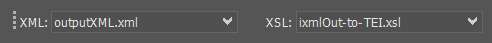 In the top left corner, put outputXML.xml in the XML input, and ixmlOut-to-TEI.xsl in the XSL input like so: